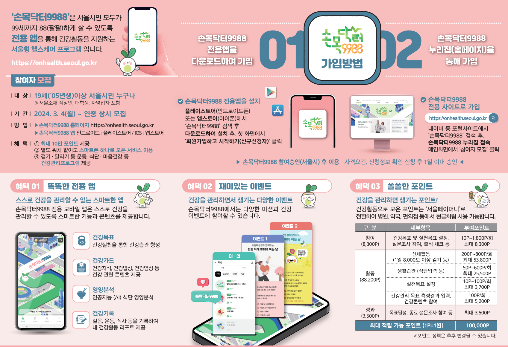“손목닥터 9988″은 서울 시민을 대상으로 하는 건강증진 프로그램입니다.